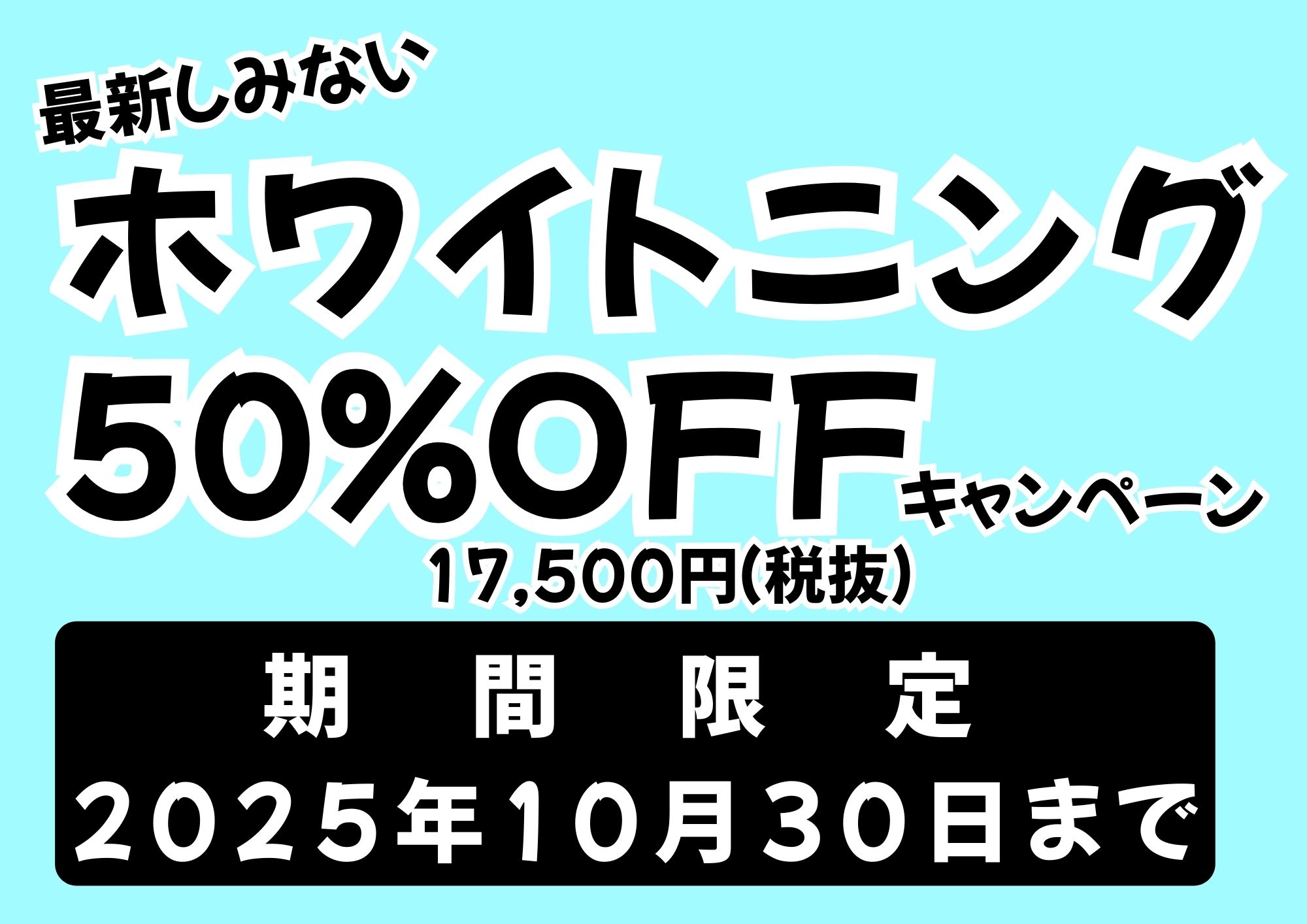 【14周年リニューアル】ホワイトニング50%OFFキャンペーン実施中